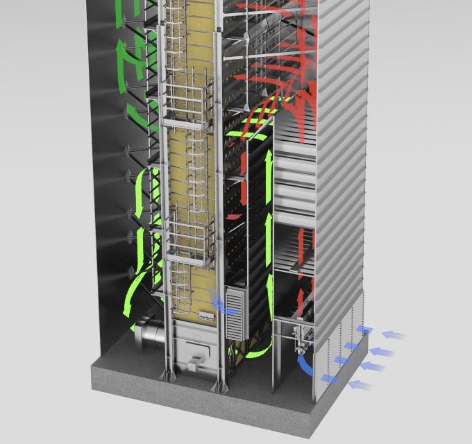 Вытяжные вентиляторы оснащены автоматическими жалюзи защиты от дождя. Встроенная система пылеподавления.